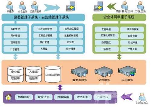 杭州市建委為加強(qiáng)綜合管理機(jī)制,規(guī)范業(yè)務(wù)管理流程,實(shí)現(xiàn)市、縣、地三級管理互通,信息流轉(zhuǎn),采用數(shù)字質(zhì)安監(jiān)綜合管理平臺系統(tǒng),該系統(tǒng)打破了在工程安全監(jiān)管方面,長期依賴人力調(diào)查、紙文件傳輸?shù)裙ぷ鞣绞街写嬖诘臅r效性不強(qiáng)、數(shù)據(jù)處理繁瑣的難點(diǎn),系統(tǒng)提供了齊全的業(yè)務(wù)處理模塊,使監(jiān)督工程安全所需要的數(shù)據(jù)、信息、能夠及時有效的進(jìn)行共享和傳遞進(jìn)入系統(tǒng),并由系統(tǒng)自動生成統(tǒng)計和分析數(shù)據(jù)。如:每日統(tǒng)計與分析報表,從而實(shí)現(xiàn)政府工程安全監(jiān)管部門動態(tài)的掌握全局情況。能夠大幅度提高工作效率,為決策提供科學(xué)、準(zhǔn)確的數(shù)據(jù)。利用系統(tǒng),可對所屬建設(shè)工程從開工報監(jiān)到項目竣工整個生命周期內(nèi)的安全業(yè)績的考評、施工現(xiàn)場安全文明施工檢查、工程施工過程中日常的安全監(jiān)督與驗(yàn)收均有積極的作用。