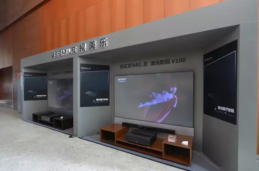 激光電視與超短焦激光投影機是近年內的熱門話題,其宣傳推廣方面主要以功耗低、廣色域、短距離大畫面等作為重點而大舉殺入家用影音領域。其中,激光電視實際上由一臺超短焦激光投影機加上一塊“冷屏”組成,有著良好的抗環境光效果。像INESA(儀電電子)、光峰光電、視美樂這三家國產品牌就亮出了它們的激光電視產品。不過,目前的激光電視的投影部分和屏幕部分都是分離的。對于客戶而言,這樣的設計在使用時還是不夠方便,不夠快捷。因此,嚴格來講激光電視還不能完全地稱得上是電視。畢竟單一的超短焦激光投影機同樣可以搭配一塊“冷屏”來達到與激光電視相同的目的,而且要尋找一塊具有抗環境光干擾能力的投影幕也不是難事。這次展會上,有展示超短焦激光投影機的參展商們都采用這種搭配方式來演示。所以我們認為,如果激光電視要更好地體現出“電視”這兩個字,那就需要把投影部分和屏幕部分做成一體化,那么才能算得上真正意義上的電視,然后再配上多聲道音響就能得到一個客廳影院解決方案了。
