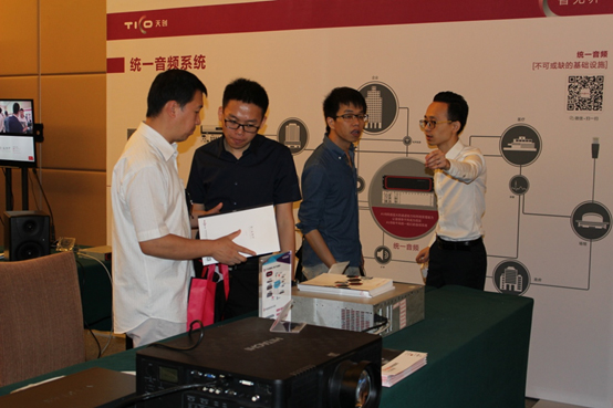 在活動(dòng)現(xiàn)場(chǎng),天創(chuàng)搭建了許多實(shí)用且專業(yè)的應(yīng)用解決方案并和大家做了技術(shù)分享,包括智宇系統(tǒng)——大型廳堂網(wǎng)絡(luò)智能化音視頻系統(tǒng),智音系統(tǒng)——統(tǒng)一通信音頻應(yīng)用解決方案,智拓系統(tǒng)——高品質(zhì)會(huì)議系統(tǒng)應(yīng)用解決方案,及統(tǒng)一音頻解決方案——全網(wǎng)絡(luò)資源的充分調(diào)用。此外,活動(dòng)上還介紹了許多創(chuàng)新的技術(shù)和產(chǎn)品,如可調(diào)音頻指向性技術(shù)、會(huì)議系統(tǒng)(話筒)的選擇和應(yīng)用等,最新的藍(lán)光盤(pán)存儲(chǔ)系統(tǒng)。天創(chuàng)旗下代理的全線音頻產(chǎn)品,SONY高清會(huì)議攝像機(jī)及日立DLP投影機(jī)等也在現(xiàn)場(chǎng)做了展示。