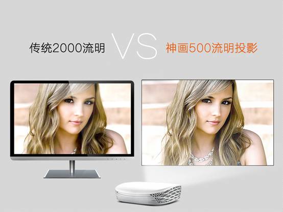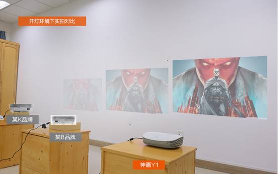 色彩流明等于RGB三基色的平均亮度的總和,因此500色彩流明的神畫Y1的白流明值約為1500,而前面我們分析過傳統2000流明投影儀的亮度值約為1600流明左右,也就是說神畫Y1的實際亮度表現與標稱值為傳統2000流明的投影儀相當。而根據實際對比測試的情況來看,神畫Y1的亮度表現也確實在同類產品中有著明顯的優勢。