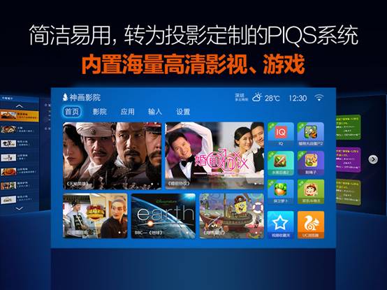 為了充分釋放神畫Y1的強勁硬件性能,神畫Y1還采用了基于Android4.4深度定制的PIQS UI,人性化的交互設計更適合大尺寸畫面的觸控操作,在美觀的基礎上提供了更便捷的應用管理和文件管理系統。