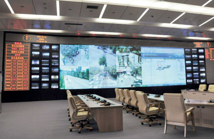 某地公安系統項目在指揮調度,應急指揮及道路監控等應用的大屏幕系統采用了三菱電機的60英寸LED光源背投單元,由4行10列拼接組成。