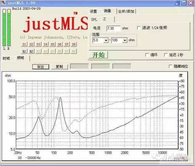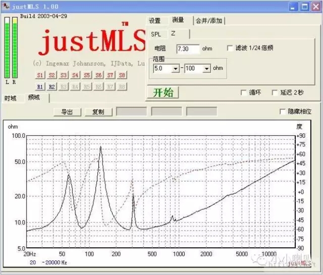 此外,必須提到,不同功率水平下,阻抗曲線的形狀是不同的,峰谷的高度甚至峰谷的位置,都會隨著功率水平發生明顯的變化。以上的結果只有在功率很小時才成立,隨著功率增大,最明顯的變化就是低頻峰的高度降低,這時候,原來不等高的可能變成等高,而等高的也會變成不等高。而吸音棉的增減也會影響雙峰高度,等等。