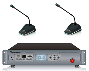 技術,點對點傳輸可達150米不衰減,單臺主機支持連接100臺單元,通過擴展最多可達65535臺單元,多會議室拆分合并,雙機熱備份。并支持MP3錄音功能,可用USB及SD卡將會議的音頻內容錄制下來?梢詽M足政府、企業、學校、醫院等各種會議室的使用需求。