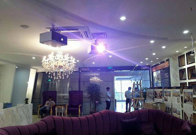 看看燈具展示廳整體的場景,加上有PJ K7000的投影更有科技感了,很多人都被這些投影展示吸引了,太牛掰了。