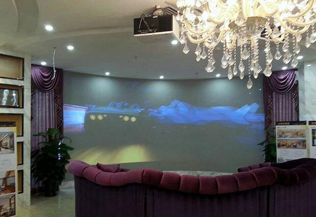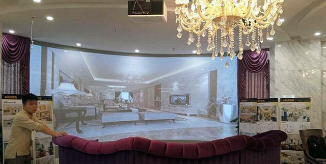還是被我發現了,前幾天陪朋友去燈具展示廳看到了工程投影機投影300寸的弧形畫面,大尺寸的感覺就是不一樣
