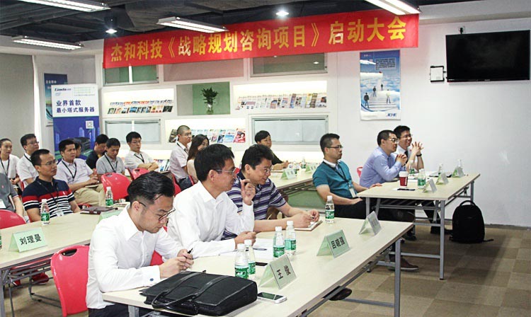 2015年7月15日上午,在東方硅谷鵬城,深圳市杰和科技發展有限公司召開了《戰略規劃咨詢項目》啟動大會。杰和集團所有高層領導及團隊骨干、百思特董事長張正華、項目經理孟得強等近40人齊聚一堂,共同見證杰和又一里程碑事件的誕生。