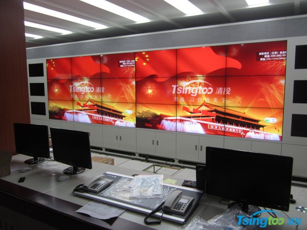 大屏顯示系統采用清投3X7 55寸LCD拼接,兩側采用8臺液晶監視器輔助顯示。大屏控制系統采用21路高清輸出,8路RGB輸入,16路視頻輸入,充分保障了4分屏顯示的便捷性。為滿足客戶便捷使用需求,清投采用特殊技術將處理器與矩陣進行一體化拼接,使大屏前后端都呈現一體化模式。