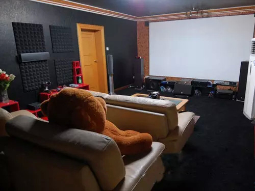 這一次的升級(jí),除了器材,網(wǎng)友同樣把房間隨便也改造了一下,之所以有這樣的想法,主要是因?yàn)樵瓉淼挠耙羰沂鞘昵把b修的房間,整個(gè)房間通體多是大白墻,導(dǎo)致看投影時(shí)反光嚴(yán)重,一遇到較明亮的畫面就會(huì)出現(xiàn)白花花霧蒙蒙一片,怎么遮光都沒有用,非常不爽!所以該網(wǎng)友下定決心讓它徹底黑下來。由于在AV199上做足了功課,知道AV中心(功放)的重要性,一咬牙把2310升級(jí)到了4810。主要還是看重了11.3的前級(jí)輸出功能。另外,加上影音室的空間有足夠的空間,擺上十幾個(gè)喇叭是不成問題。還有就是英語與HIFI是兩條路,影院最重要的就是廣闊空間感。否則那種臨場(chǎng)感與大氣勢(shì)是難以表現(xiàn)出來的。。