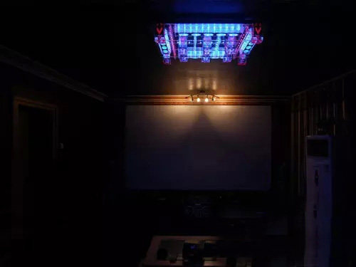 網(wǎng)上買的,全遙控,多種燈光變幻,價(jià)格雖然不到600,但安裝著實(shí)麻煩。請(qǐng)來兩個(gè)專業(yè)師傅弄了一個(gè)下午。燈光氛圍可以為影院營(yíng)造愉悅的氣氛。不是嗎?