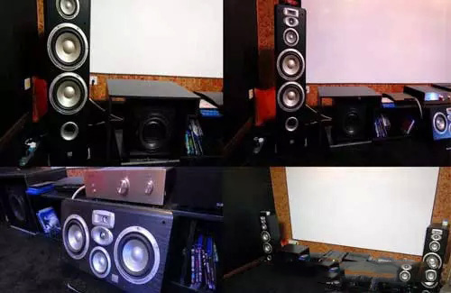 現(xiàn)在來說說環(huán)繞。最初玩的時(shí)候,進(jìn)的是JBL的旗艦衛(wèi)星箱CV50。升級(jí)后就做環(huán)繞了。五只參數(shù)完全一樣的箱子分別做側(cè)環(huán),增寬,還有一只與樂富豪的老箱子拉郎配做后環(huán)。
