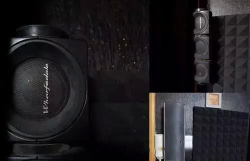 對(duì)于吸音,還用了十塊金字塔形吸音海綿,貼在第一反射點(diǎn)與后環(huán)繞處,價(jià)格便宜(一塊38元),施工簡(jiǎn)單。