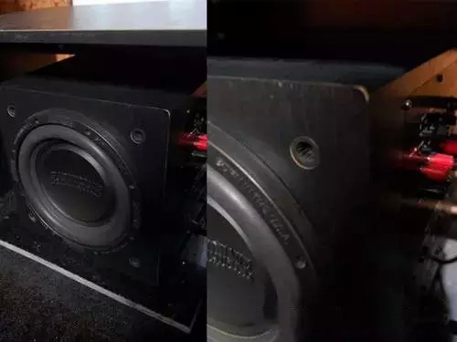 CV50的衛(wèi)星箱就5個(gè),到了后環(huán)這里只剩最后一個(gè)了。某天在整理房間時(shí)無意中發(fā)現(xiàn)了八年前進(jìn)的這種樂富豪的中置。從未使用過,試了下覺得聲音還行。再加上后環(huán)出的主要是背景噪音,作用是營(yíng)造音場(chǎng),而且人耳對(duì)后部的聲音又極不敏感,沒必要在音質(zhì)上最求。