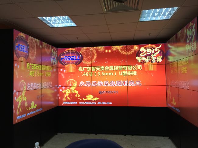 峰寧科技根據智天貴金屬的設計需求,峰寧科技為其演播室設計了一組3x7 21片46寸液晶U形拼接墻。