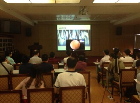 本次培訓分為理論培訓和手術示教兩個部分,其中理論部分從“關節鏡手術在骨關節炎中的應用及爭議”出發,圍繞ACL自體韌帶重建以及盤狀半月板修補縫合技術領域相關話題展開了培訓和探討。傳統的膝關節手術創傷大,出血較多,術后恢復慢,關節處有較大手術瘢痕。而膝關節鏡能對膝關節內疾病進行檢查、診療,適用于膝關節損傷、非感染性關節炎等,因此膝關節鏡手術被認為是對膝關節病變產生較好治療效果的治療手段,越來越受到廣大膝關節患者的青睞。