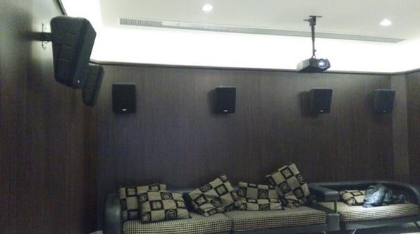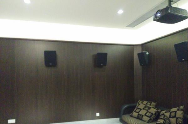 配置了3D的高清投影系統,高清電影透聲熒幕,熒幕一側配置了飛達(Fidek)左、中、右、超低頻主聲道音箱,后場四只環繞音箱,對影院系統整體音效進行了強化,環繞效果進一步增強。滿足房間的空間太小的需求,使整個音場更連貫。