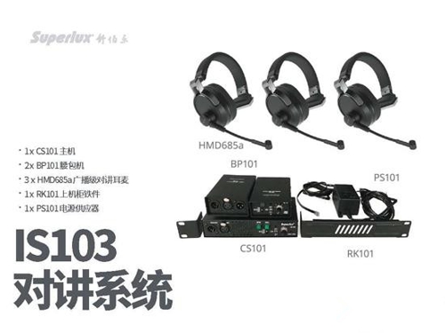 IS-103系統(tǒng)的標(biāo)準(zhǔn)配置包括,1個CS101小型主機(含喇叭)、1個PS101外接電源供應(yīng)器、2個BP101腰包機和3個HMD685a單耳對講耳機,根據(jù)實際需要可以選購多個配件以擴展到多人同時使用。