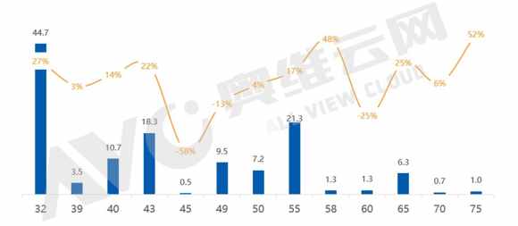 43"出貨量達到18.3M,同比增長22%,供應端的增加是出貨增長的主要原因,BOE福清8.5代線以43"進行產能爬坡并在3月份達到了150K/M的滿產產能,同時其他面板廠也在40-50區間段收縮其他產品而聚焦43",加上對于明年華星光電11代線將用43"爬坡的預期,中小尺寸段有望整體向43"轉移,整機廠開模積極。