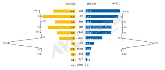 數據來源:奧維云網(AVC)顯示器件與系統事業部Unit:Mpcs,M㎡,%
