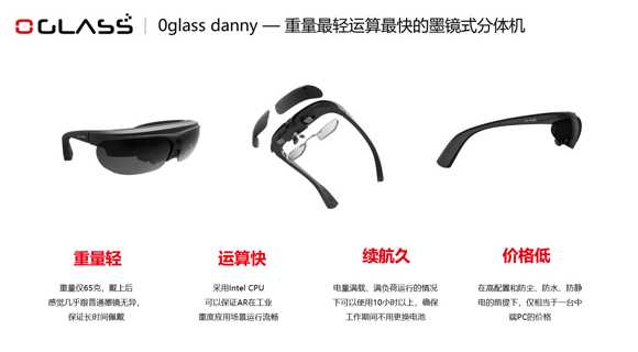第一、產品定位。0glass工業AR的定位與國內其他AR公司的區別是0glass專注做工業AR,其他領域和行業都不涉及;而其他AR公司都是做很多行業的,比如:有的公司它只做AR+營銷,AR+游戲,AR+娛樂,AR+醫療,順帶做工業;而有的公司在做AR+工業的同時,然后又做AR+醫療,AR+教育培訓等。只有0glass專注做AR+工業,正是因為專注,所以我們才做出與場景深度融合的產品。比如:0glass danny AR智能眼鏡,分體式設計雙目墨鏡設計、重量更輕、10小時續航,采用英特爾x86架構處理器,部分計算可以交給云端,采用成熟光機方案,最重要的是價格可以做到萬元以內,且佩戴起來和平時普通墨鏡幾乎沒區別。它具耐高溫的特點,適合在高頻操作的優勢,能減少系統周邊的零組件及冷卻系統的體積,符合在工業場景上的應用。