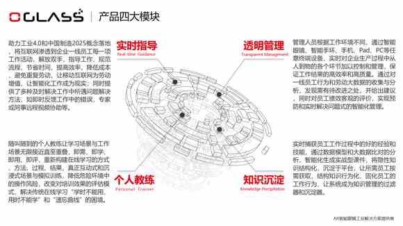 PPS系統和解決方案有四個模塊:實時指導,透明管理,個人教練,知識沉淀。有了這四個模塊在工業AR應用中才能形成一個閉環。0glass的目標是把PSS打造成一套類似于現在ERP的系統平臺,80%標準化、模塊化,20%根絕工業客戶的使用場景和需求定制化開發。