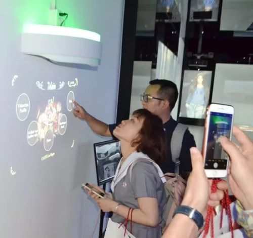 日立創新影像空間充分利用開闊空間,創造了面向商業、教室、家居等各種應用的精彩方案:迎接賓客的階梯投射與前臺墻面投影令人倍感親切,適合商業應用的8K巨幕廣告墻、酒瓶異形廣告牌方案引人矚目;面向美術館、音樂廳的變換燈、激光投影與鋼琴Mapping方案則極具創意;適合商業樣板間和家具商場的軌道鏡Mapping意趣盎然;模擬高爾夫球方案則是成熟的商業應用。觀景窗、地面廣告、豎投廣告等方案是創意與商業的精彩結合;數字餐廳實現視覺與味覺的巧妙融合;智能投影壁燈適合打造創意方案等備受與會嘉賓的關注。