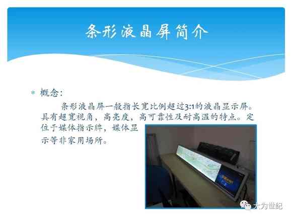 條形液晶屏的高亮液晶基板經過獨有的技術處理。使普通TV屏具有工業級液晶屏的特點,可靠性高,穩定性好,適合在惡劣的環境中工作。