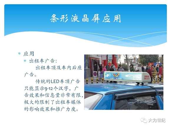 液晶條形屏用其得天獨厚的優勢,已經逐步取代了傳統的廣告牌、燈箱等,成為廣告傳媒業的一支新力量。