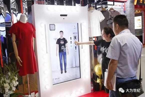 在門店墻壁鑲嵌一塊條形屏,用作智能試衣鏡,可以根據客戶身材虛擬試衣,省時省力,助于達成交易。