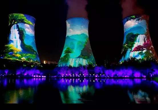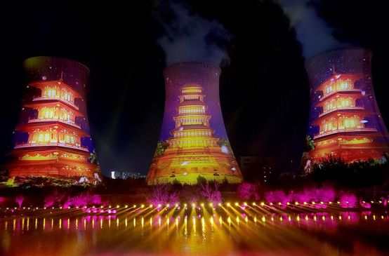 高塔投影秀運用12臺NEC 4萬流明4K雙色激光旗艦級工程投影機,開創(chuàng)性地以近百米發(fā)電廠冷卻水塔為背景,在超過10000平方米的高塔「屏幕」上,演繹了一場氣勢恢宏的傳奇劇目,炫目的投影效果讓世人嘆為觀止。
