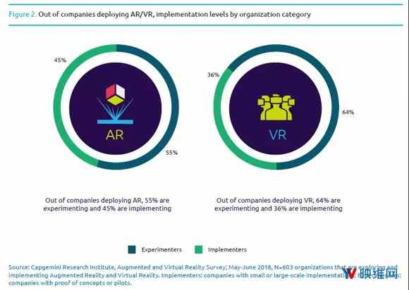 報告指出,美國和中國的企業正在實施AR/VR的競賽中搶先一步,超過50%的受訪企業已經在商業運營中實施沉浸式技術。法國,德國,北歐和英國中則有超過50%的公司仍在試驗AR/VR計劃。