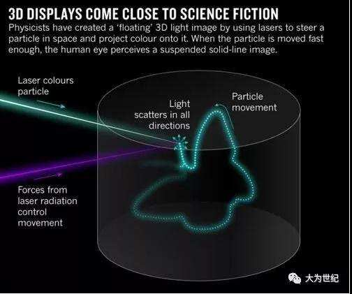 借助所謂的體三維顯示(volumetric display)技術,系統可以通過一個例子來創建上圖中的漂浮蝴蝶