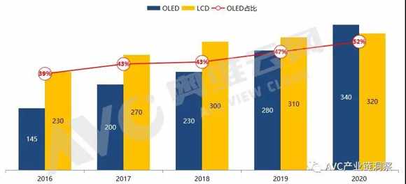 目前OLED資源主要依然以三星顯示為主,品牌廠商為避免面板資源被三星綁定,造成供應時效出現問題,對OLED態度較為謹慎,所以OLED的市場需求暫未爆發。但隨著國內面板廠產能提升,OLED面板資源增多,品牌廠如蘋果、華為可選擇的供應商增多,帶動整體需求增長。另外,價格方面,由于OLED面板價格相對LCD較高,對產值貢獻明顯,隨需求及產能增長,OLED面板的產值將逐步增加,預計將逐步超越LTPS及a-Si等LCD面板技術產值。