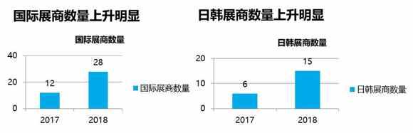 日韓展商以及非日韓地區(qū)國際展商數(shù)量相比2017有大幅度的提升,其中,有6家來自世界500強(qiáng)企業(yè)。