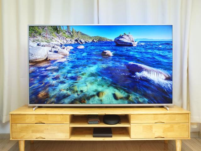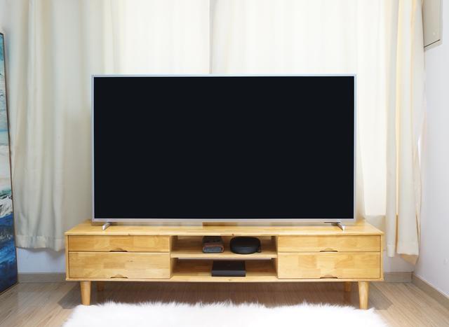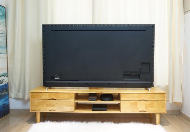 箱子拿走,放上電視,一米八的電視桌終于一展所長,70寸的電視幾乎占滿,而遠(yuǎn)遠(yuǎn)看去,金屬腳架與超窄金屬邊框的點(diǎn)綴,也讓這一眼望去全是屏幕的大電視多了些質(zhì)感。