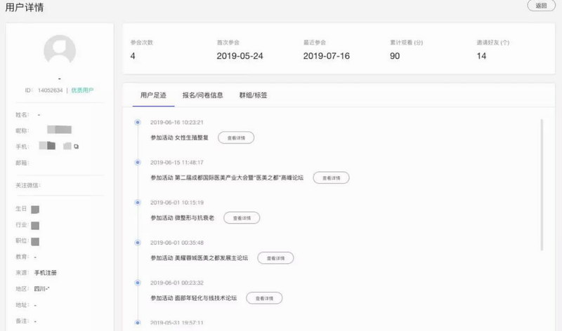 此外,微吼還可以對每一位觀眾進行精細化分析,能有效洞察觀眾對活動的認可度,興趣點,便于主辦方后續有針對性的進行回訪。