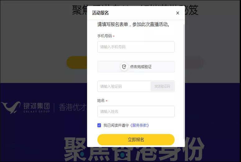 觀眾在線進入解析會直播間前需要留下自己的手機號,并通過驗證碼驗證有效性后方可進入。報名表單能夠幫助活動主辦方收集對解析會感興趣的觀眾,并能通過手機號有效觸達,幫助企業客戶建立用戶池。