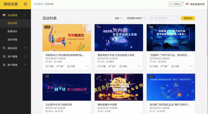 而在剛剛結束的2019云棲大會上,微吼CEO林彥廷也接受了專訪。在專訪中,他表示,微吼在企業級直播領域深耕9年,直播場次達到400萬場,覆蓋1.6億人群。通過對豐富的直播數據進行分析,微吼發現,企業對對外營銷有著更高的需求。