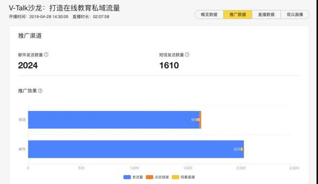 直播學院借助微吼的微信運營推送、短信郵件邀約功能,對微吼用戶以及公眾號粉絲進行定向邀約,用戶數據盤活,通過直播的形式進行深度持續的私域流量管理。