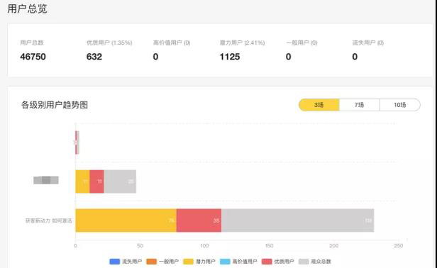 直播學院根據用戶在直播活動中的各項行為數據,為用戶進行分級及標簽化,對于優質用戶進行銷售端的重點跟進管理,同時對于潛力客戶進行進一步的運營培養。