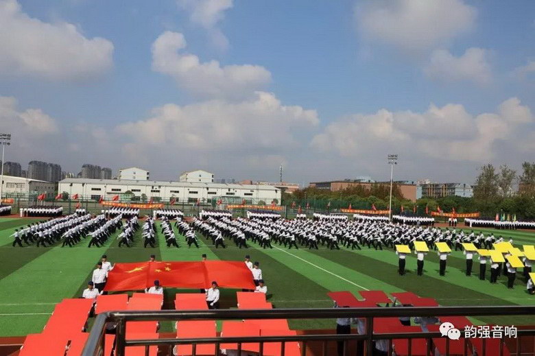 為了迎接新生軍訓展示開學典禮、豐富學員的課余生活,強化學員的身體素質,學校特為運動場建立了擴聲系統。