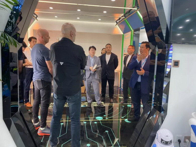 在家暢物聯創始人李慶文先生的陪同下,代表團一行人首先參觀了家暢實景體驗中心。在智慧前臺、智慧辦公、智慧酒店,家暢背景音樂主機“小暢”自動為來賓介紹并演示該區域的各種智能設備。