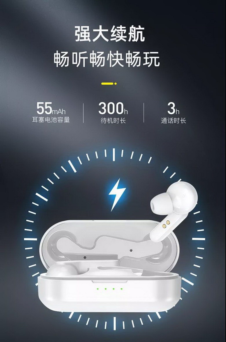 兼容無線與有線充電模式,無線智能充電倉表現(xiàn)尤為驚艷——300毫安的便攜式充電倉還能提供給耳機(jī)額外多次充電:充電1小時(shí)、待機(jī)300小時(shí)、通話3小時(shí)、音樂2.5小時(shí)……