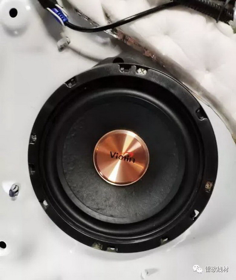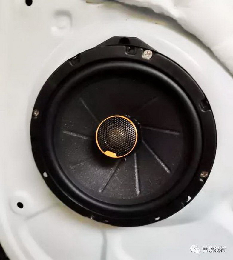 在使用隔音材料,對汽車做了隔音處理之后,改裝技師將汽車的前聲場喇叭,替換成了德國小提琴EA6.2兩分頻套裝喇叭,它所播放出來的音樂真實、動聽,可以真實還原音樂的美感。后聲場選用德國小提琴VA6全頻同軸喇叭,以保證音樂味道的統一性。