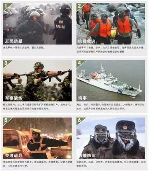 無論是用于搜索、救援、巡邏,還是用于特警作業(包括實施人群疏導、交通和出入口管制、封鎖、設卡、刑拘等),這套可移動裝置都可以用來增強公共安全手段,就“遠距離、高強度聲音輸出、低能耗、高清晰度安全方便”等方面說,超遠程聲引擎系統都是首選。