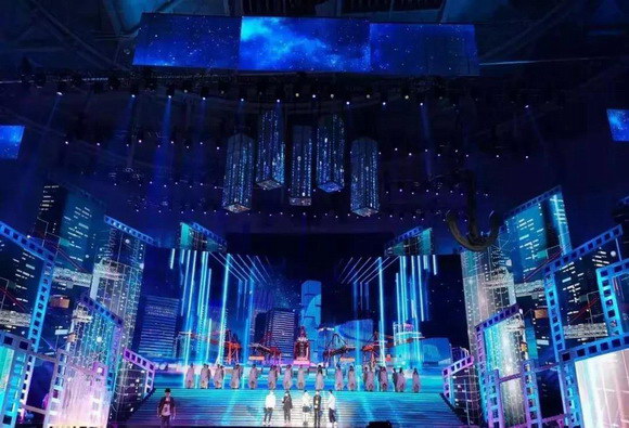 說到閉幕式晚會,不得不提今年獨具匠心的舞臺。此次舞臺以簡約大氣為主,沒有太多機械,而是通過數控升降冰屏影像、上百組燈光以及主屏幕動態特效營造奇幻的空間,并根據獨唱、合唱以及其他的表演形式來變換顏色、元素。