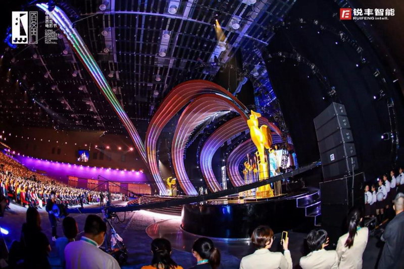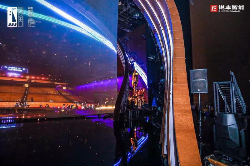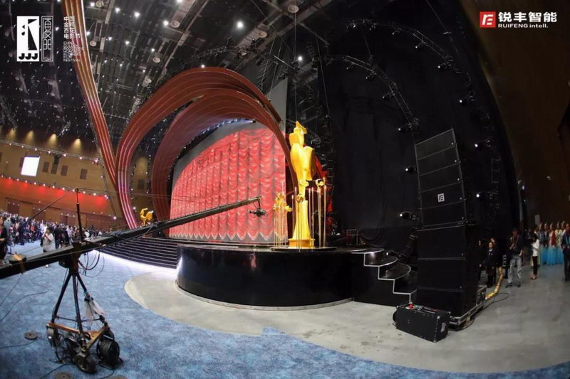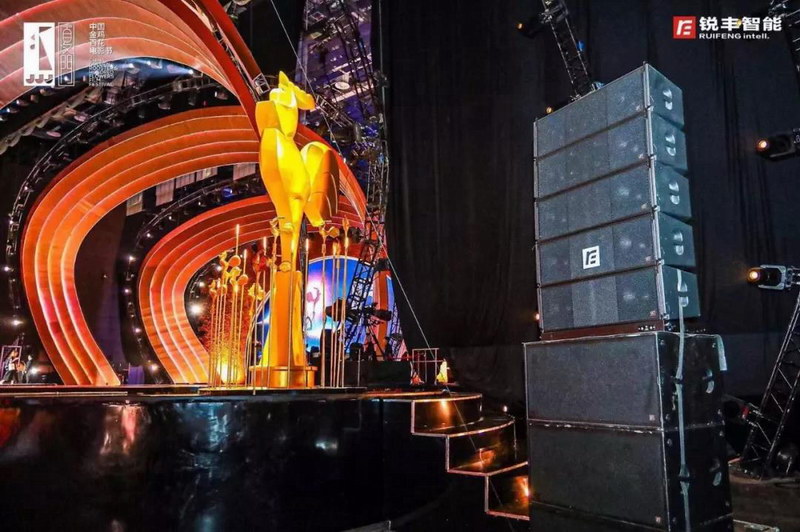 由著名音響設計師——宋多多老師擔任音響總設計,音響總監為宋仁一老師。由銳豐智能為音響技術團隊,紅毯儀式現場采用了"RF"—ML15SA&L7有源音柱揚聲器系統,頒獎典禮現場采用了"RF"—GTS線陣列揚聲器作為主擴聲,NOVI線性音柱音箱、MH三分頻同軸點聲源揚聲器系統、TX多功能系列揚聲器、以及周邊設備等產品。