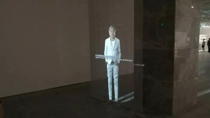 極輕薄的紗幕在Sonnoc工程投影機SNP-LU7000下,隈研吾如同真人般站在觀眾對面講解他的建筑構(gòu)想。