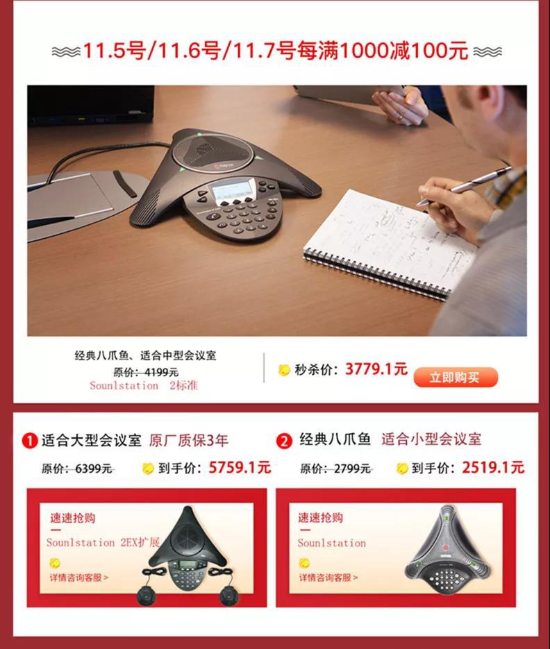 @寶利通京東自營官方旗艦店 會議電話終端,雙十一鉅惠狂歡來襲!