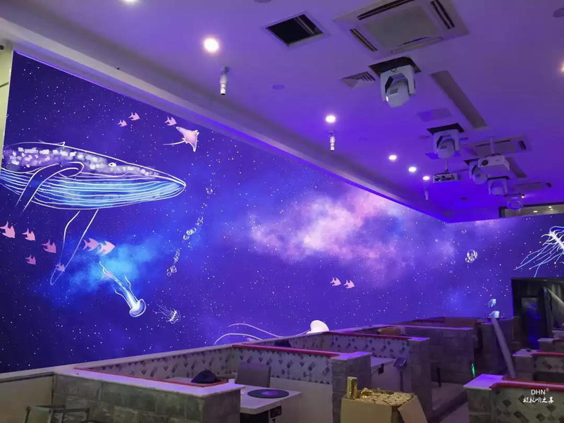 迪恒光影餐廳解決方案由投影邊緣融合系統實現。主要由信號源、圖像處理設備、自帶融合的迪恒投影、投影幕或白墻、控制系統等部分實現光影餐廳打造。在應對“新”的市場消費需求下,迪恒光影餐廳可針對特定節日、主題宴會/派對、傳統節日及西方節日、個性餐飲文化等,以不同的內容,不同的呈現方式,將餐廳以“光影藝術”表達與呈現。